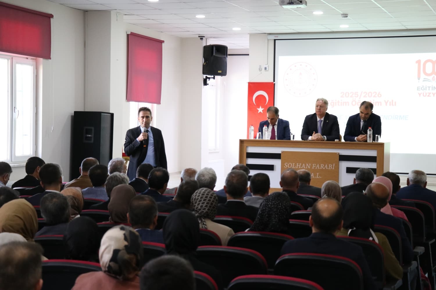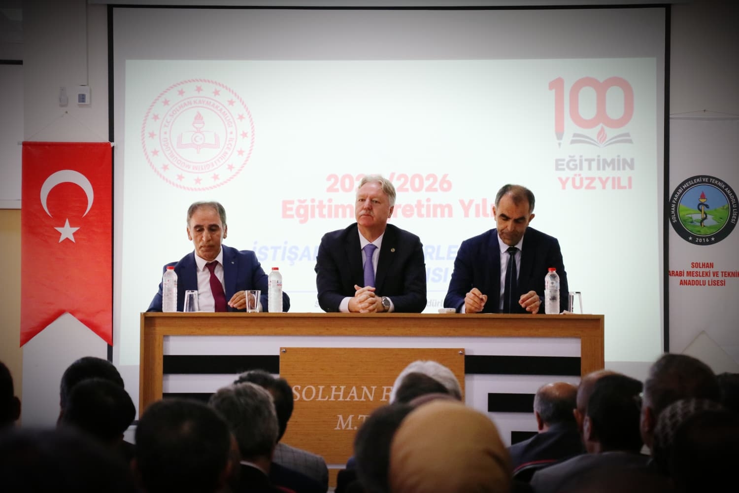 İl Millî Eğitim Müdürlüğümüzün "2025-2026 Eğitim Öğretim Yılı İlçe Eğitim Toplantıları" çerçevesinde gerçekleştirilen toplantıların altıncı durağı Solhan oldu. İl Müdürümüz Mustafa Özel başkanlığında yapılan toplantıda, İlçe Millî Eğitim Müdürü Muhittin Çiftçi ilçedeki eğitim kurumları, yürütülen projeler ve devam eden çalışmalar hakkında bir brifing sundu.
